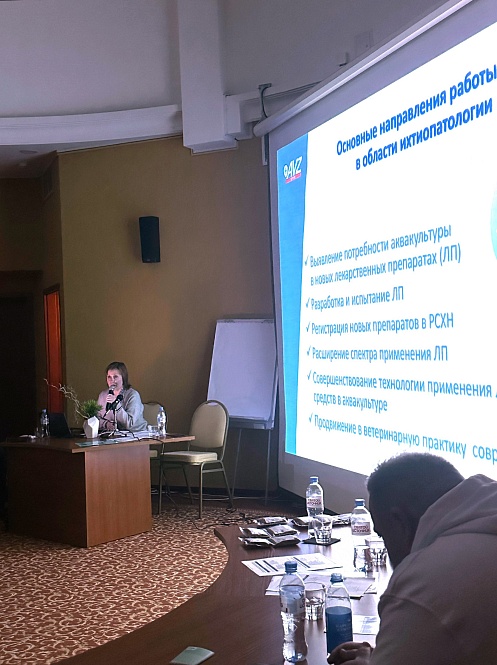 От компании AVZ выступила Маргарита Николаевна Гончарова, Руководитель направления Аквакультура с докладом на тему «Применение лекарственных препаратов в условиях интенсивного рыбоводства» и рассказала про эффективность применения препарата Cальмогир.