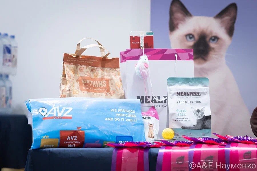Подарки от AVZ были полезными – антигельминтные препараты, капли и салфетки для глаз, уходовая косметика и витамины для питомцев, а также буклеты с полезной информацией для заводчиков.