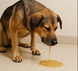 Клинические проявления болезни возникают внезапно. Отмечается потеря аппетита, кратковременная лихорадка, рвота, уменьшение количества мочеиспусканий. Живот питомца иногда становится напряженным, чувствительным при пальпации. Рвотные массы могут содержать слизь и желчь. Примерно через сутки после возникновения первых признаков появляется диарея. Фекалии отличаются зловонным запахом, в составе может присутствовать кровь. Цвет кала может быть зеленым, ярко-фиолетовым, желтым, темно-красным, черным. Рвота, сопровождающаяся диареей, быстро приводит организм животного к дегидратации. Признаками обезвоживания являются углубленные глазные яблоки и появившиеся складки кожи. У взрослых собак протекание заболевания происходит в субклинической форме и сопровождается потерей аппетита, угнетением общего состояния, редко — расстройством ЖКТ. На характер течения болезни влияют количество и вирулентность вируса, попавшего в организм, общее состояние иммунитета питомца, наличие гельминтов, присутствие стрессов в жизни животного. Поэтому важно заботиться о собаке, своевременно прививать ее, давать антигельминтные препараты. Одним из таких средств является суспензия «Диронет». Она может справиться с самыми распространенными паразитами. Длительность кормления щенка матерью тоже влияет на проявление симптомов. С молоком матери он получает определенное количество антител, которые позволят ему не заболеть или перенести этот вирус в более легкой форме. У переболевших парвовирусным энтеритом животных создается иммунитет.