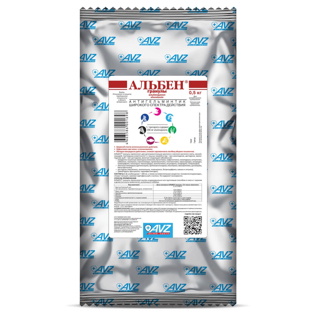 Альбендазол, входящий в состав препарата, обладает широким спектром антигельминтного действия, эффективен при моно-и полиинвазиях, активен в отношении половозрелых и неполовозрелых нематод и цестод, а также половозрелых имаго трематод. Обладая овоцидным действием, снижает зараженность пастбищ яйцами гельминтов.