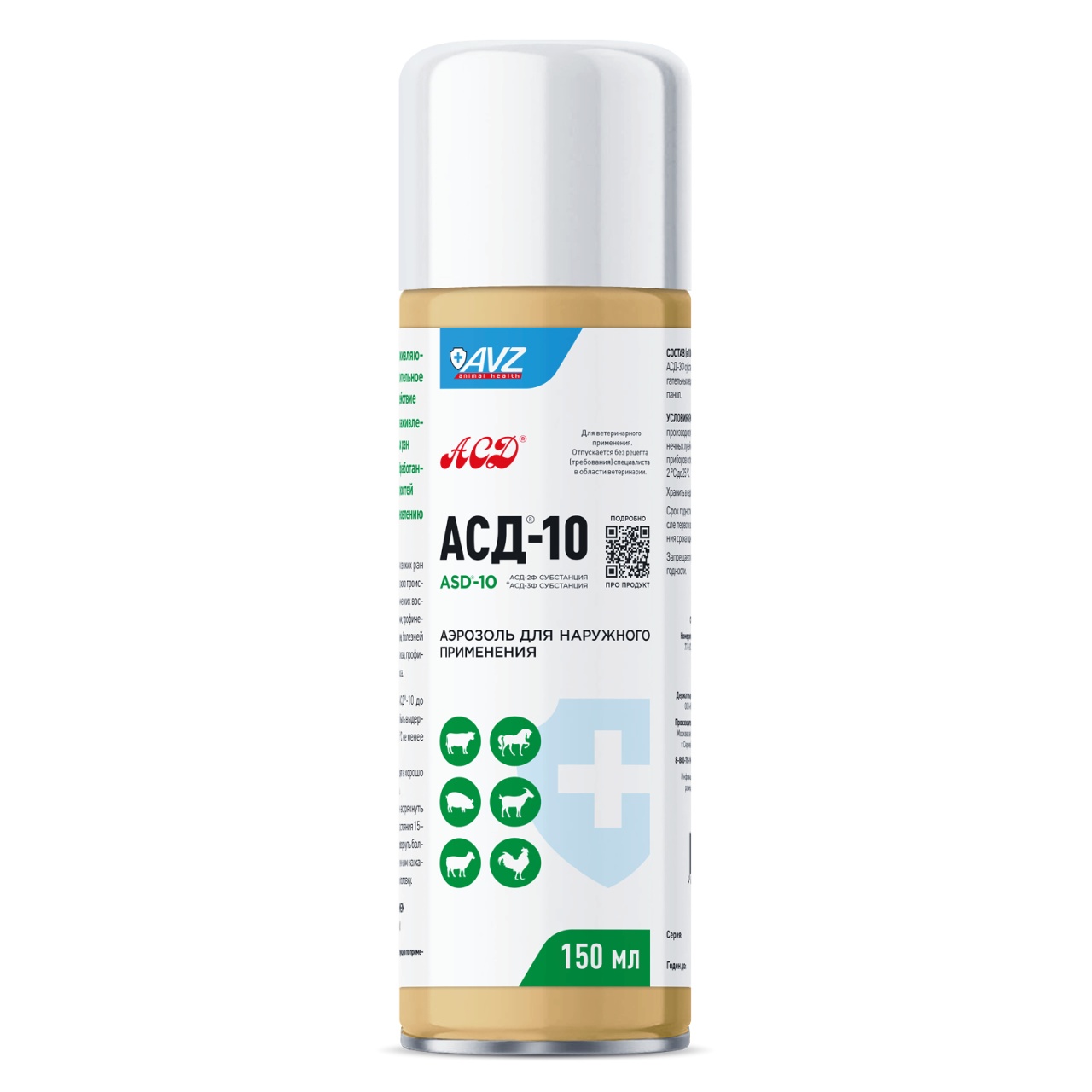 АСД®-10 назначают крупному и мелкому рогатому скоту, лошадям, свиньям и сельскохозяйственной птице для лечения свежих ран травматического и хирургического происхождения, дерматитов, хронических воспалительных заболеваний кожи, трофических язв, свищей, гнойных заболеваний кожи, копыт и копытец, некробактериоза, профилактики и лечения вольфартиоза.
