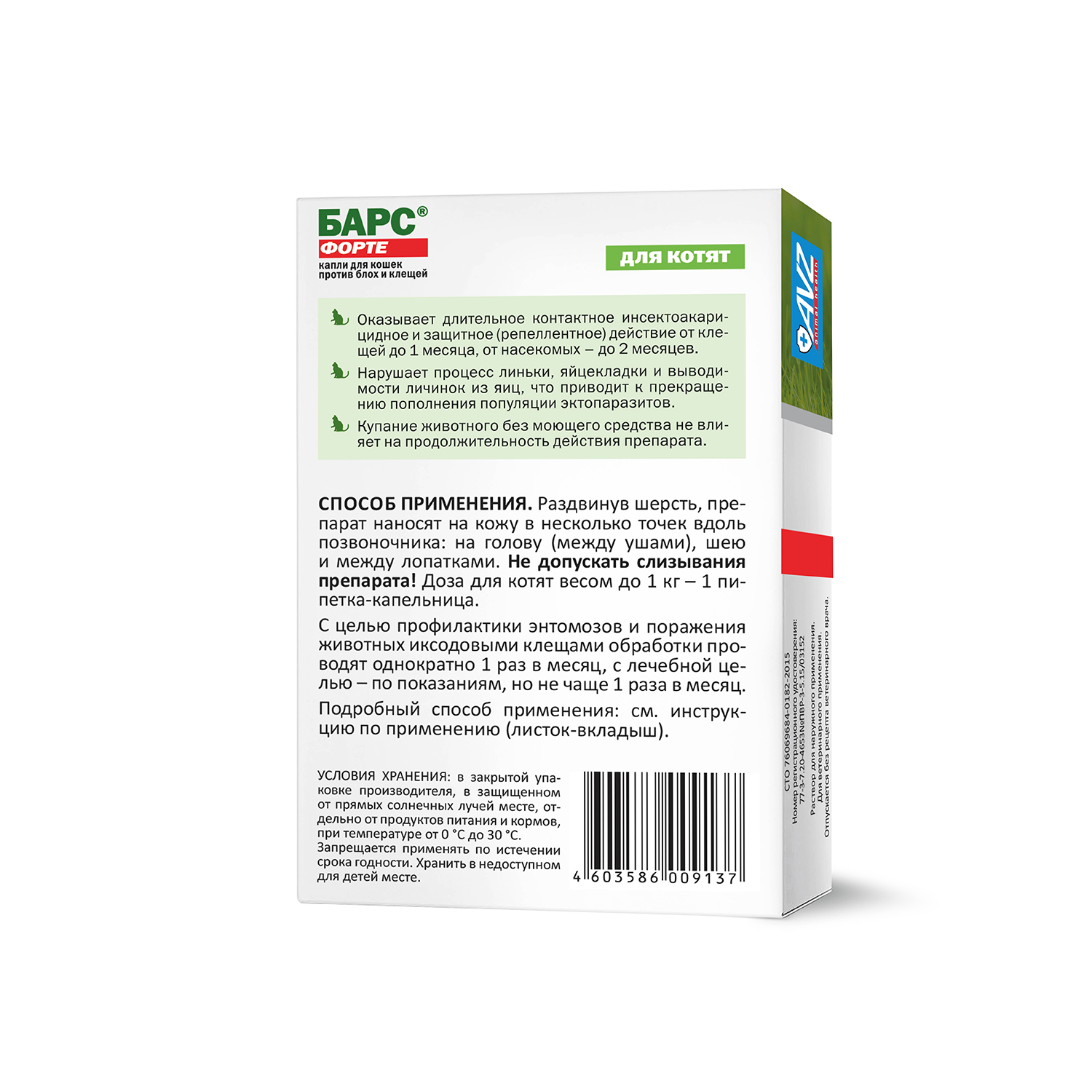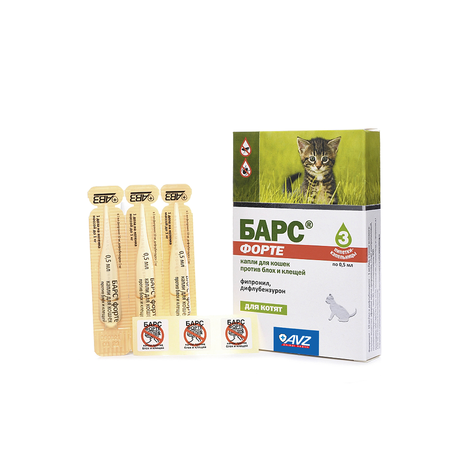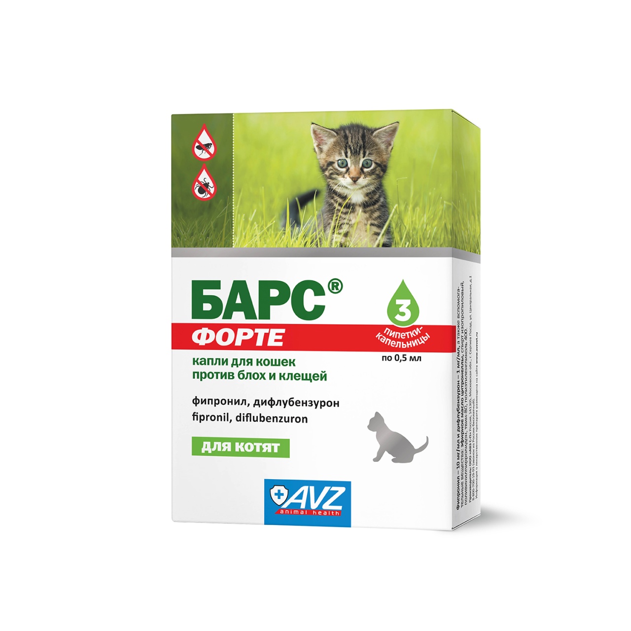 БАРС® форте капли для кошек против блох и клещей назначают котятам с 8-недельного возраста с лечебной и профилактической целью при энтомозах, вызванных вшами, блохами, власоедами, и нотоэдрозе (чесотка), поражают иксодовыми клещами, а также для предотвращения нападения эктопаразитов на животных.