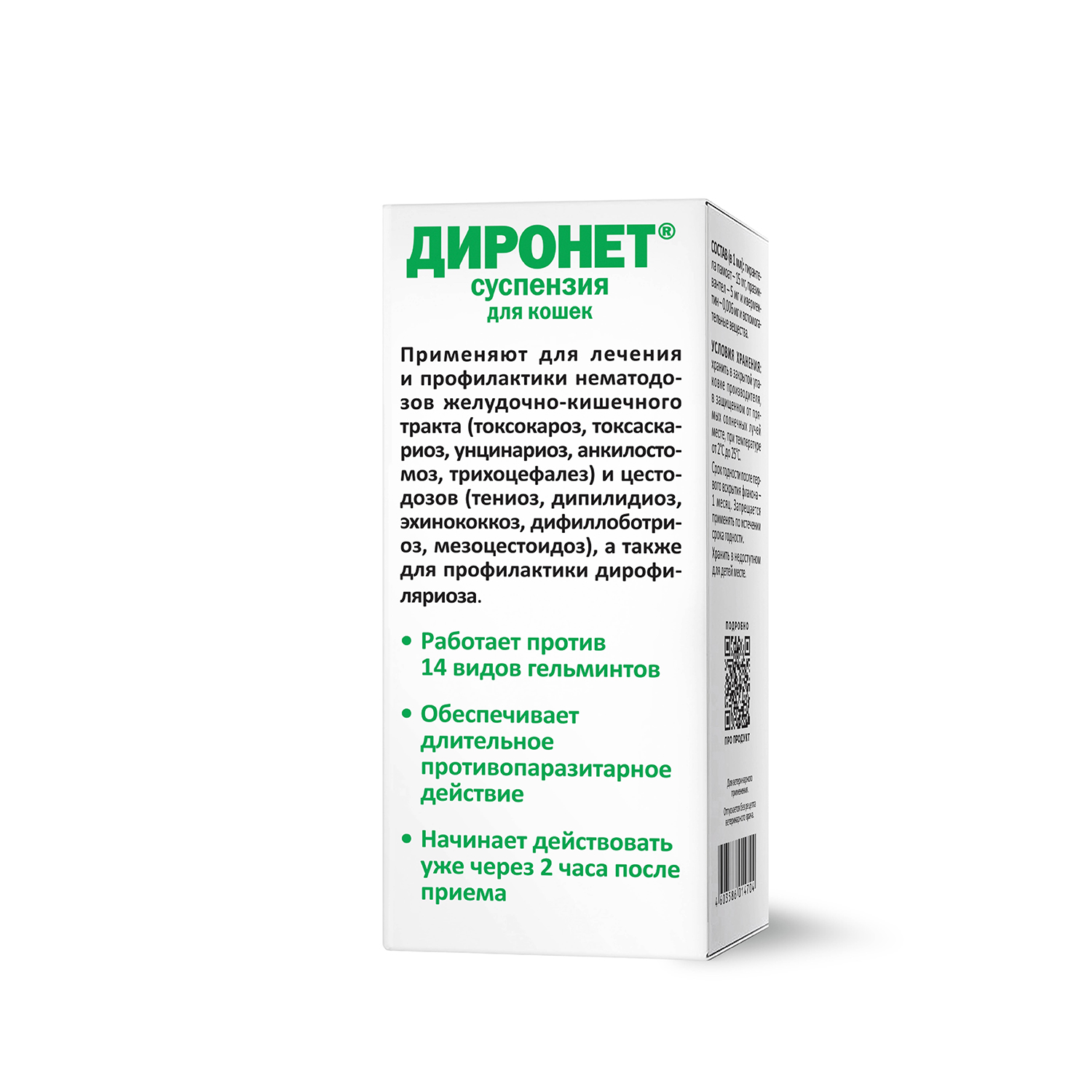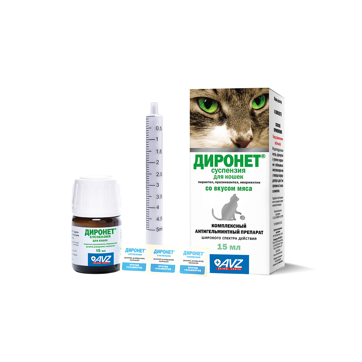 «Диронет» суспензия – полимерный флакон 15 мл со шприцем-дозатором в картонной коробке.