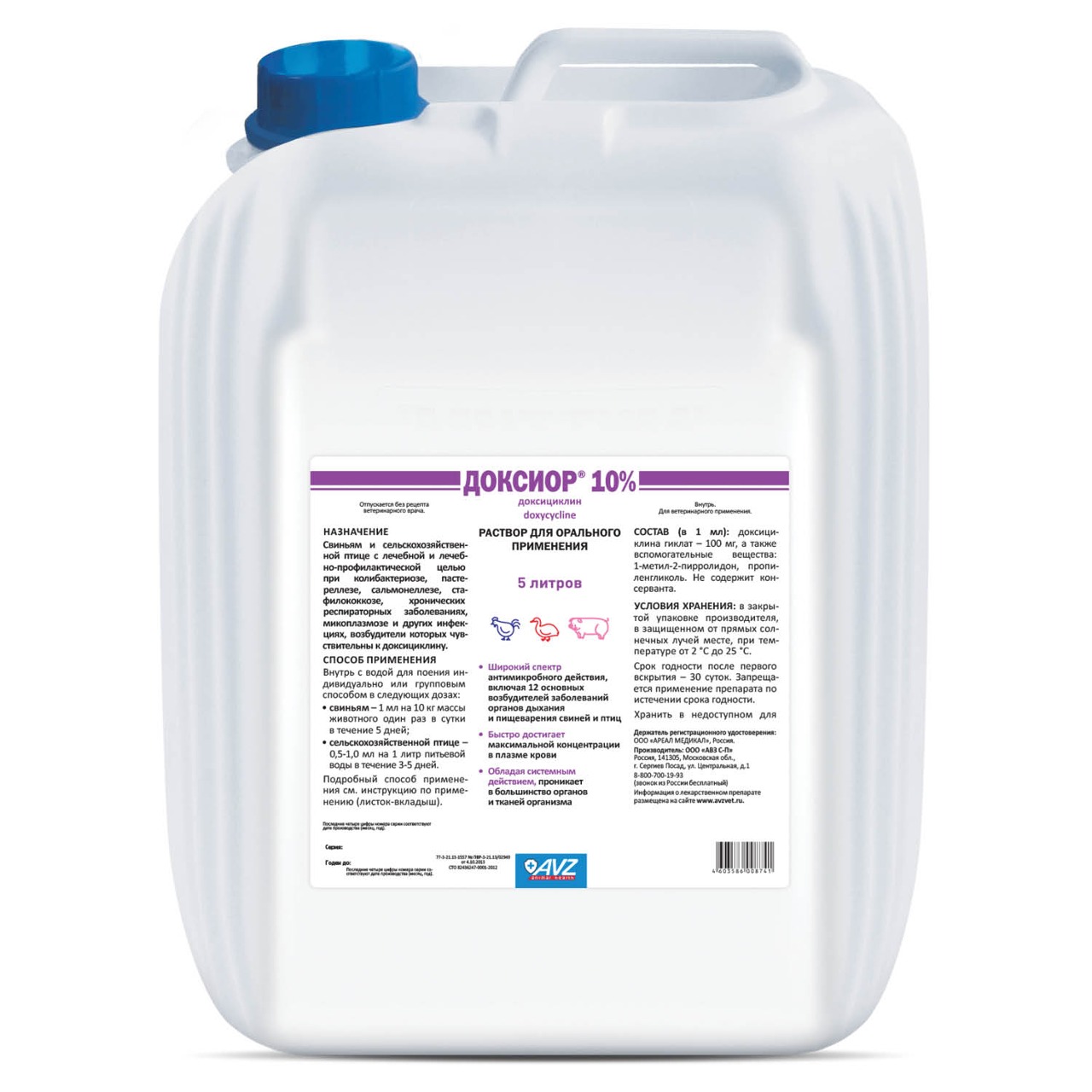 ДОКСИОР® 10% в 1 мл в качестве действующего вещества содержит доксициклина гиклат – 100 мг.