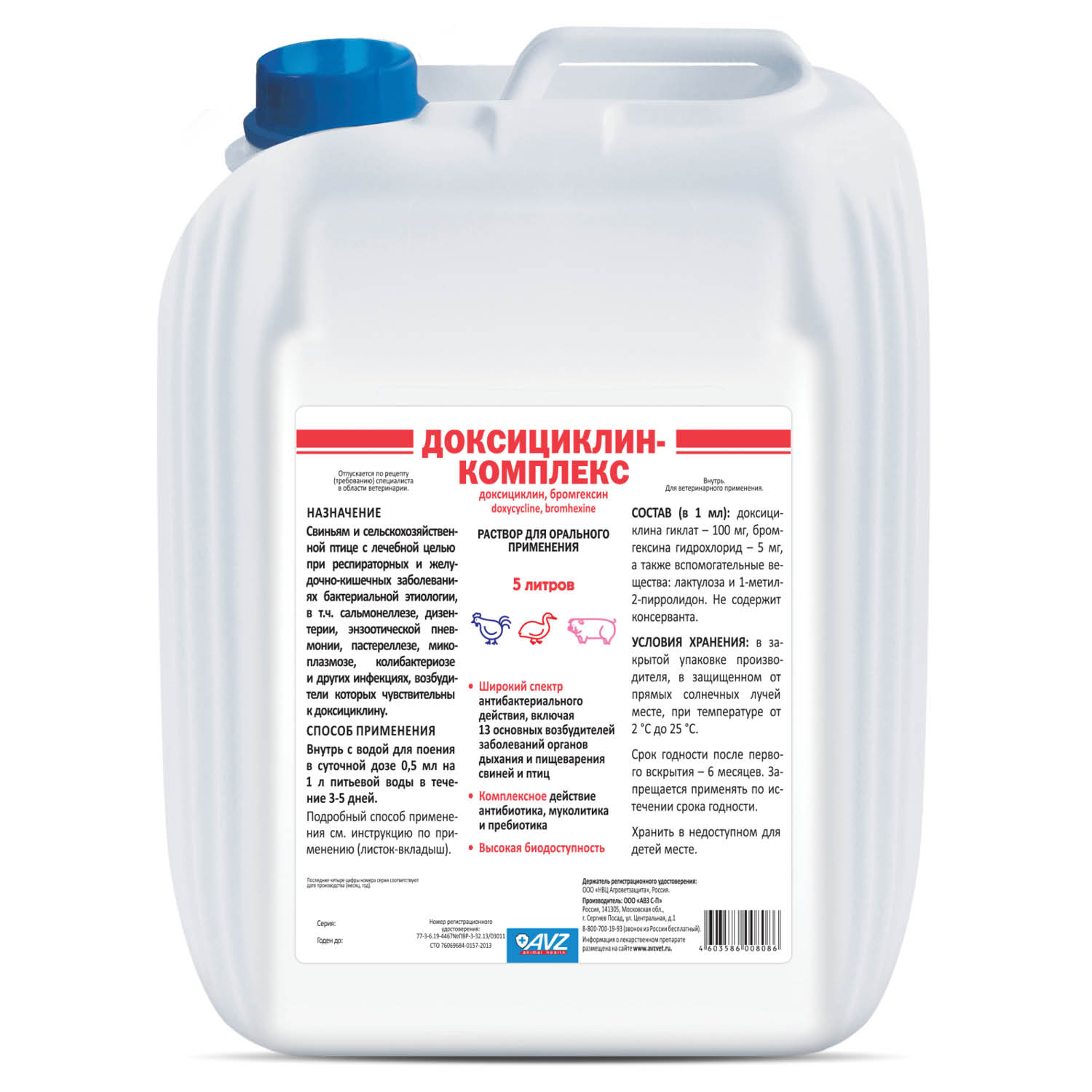 Доксициклин-комплекс. Раствор для орального применения 5 л
