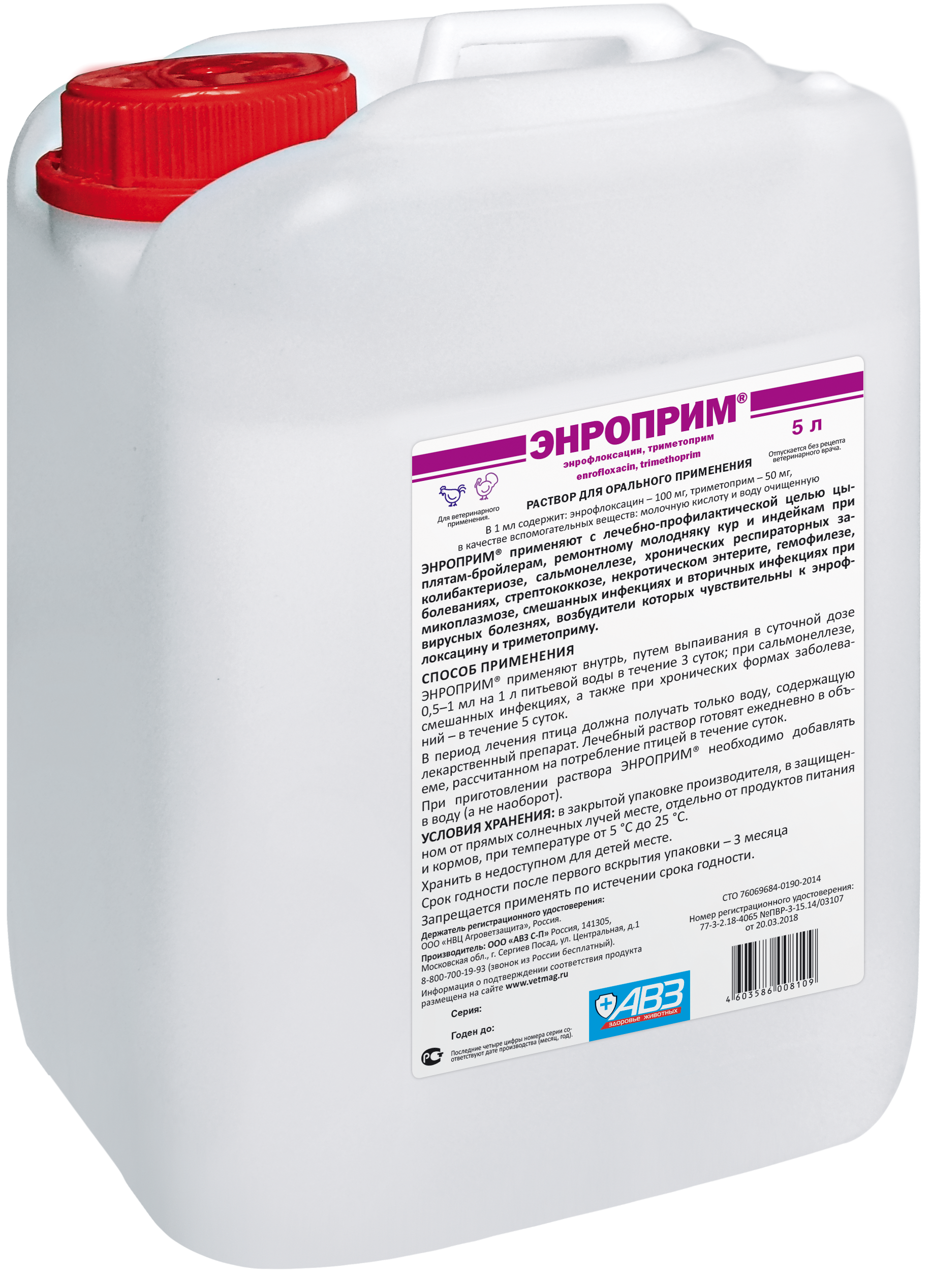 Выпускают «Энроприм» расфасованным по 10 мл в стеклянных или полимерных флаконах; по 1000 мл в полимерных бутылках; по 5 л в полимерных канистрах.