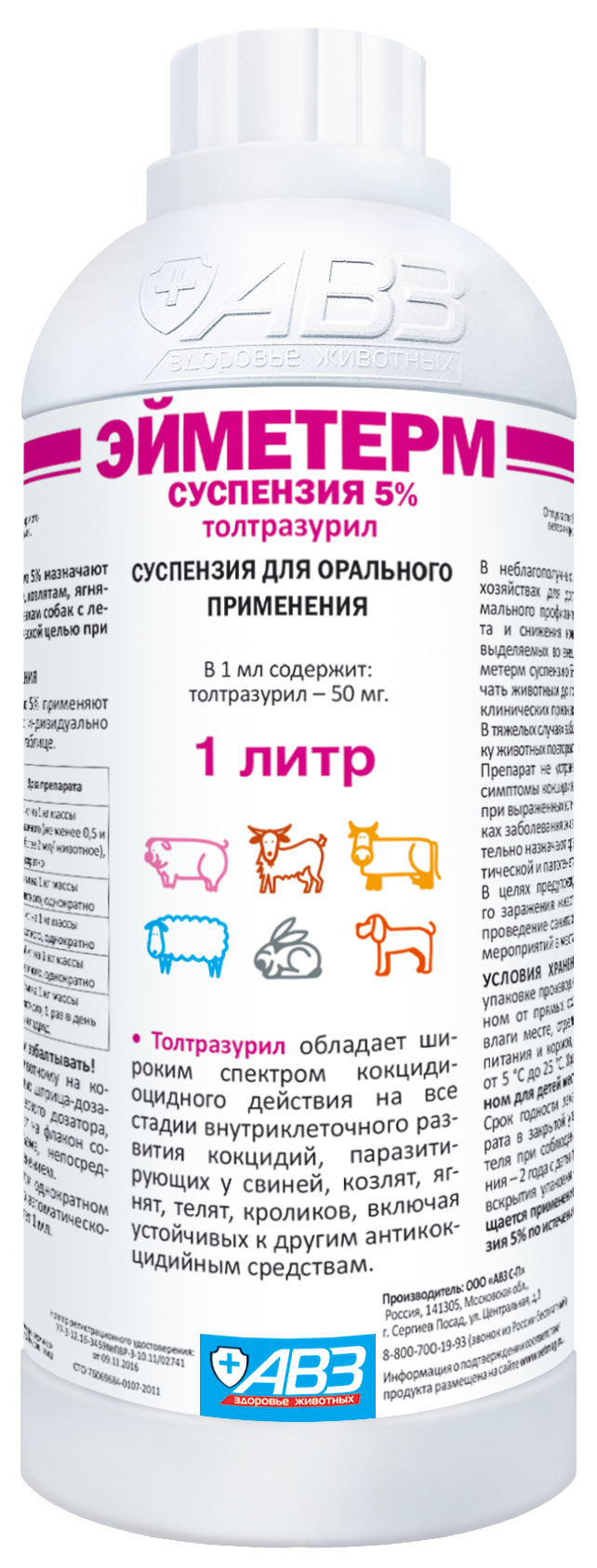 "Эйметерм" суспензия 5% относится к антикокцидийным лекарственным препаратам группы триазинтриона.