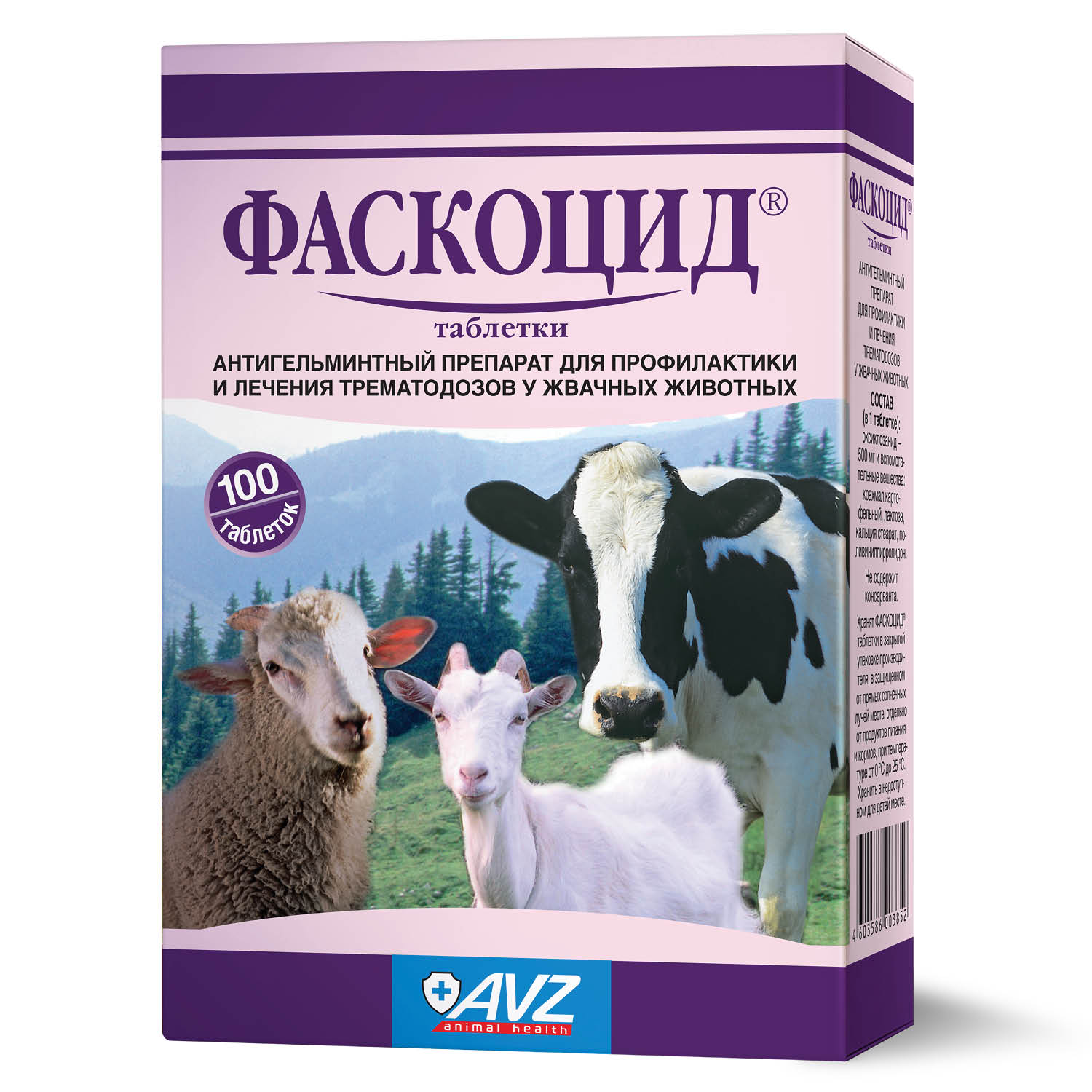«Фаскоцид» таблетки – по 100 штук в картонных коробках.