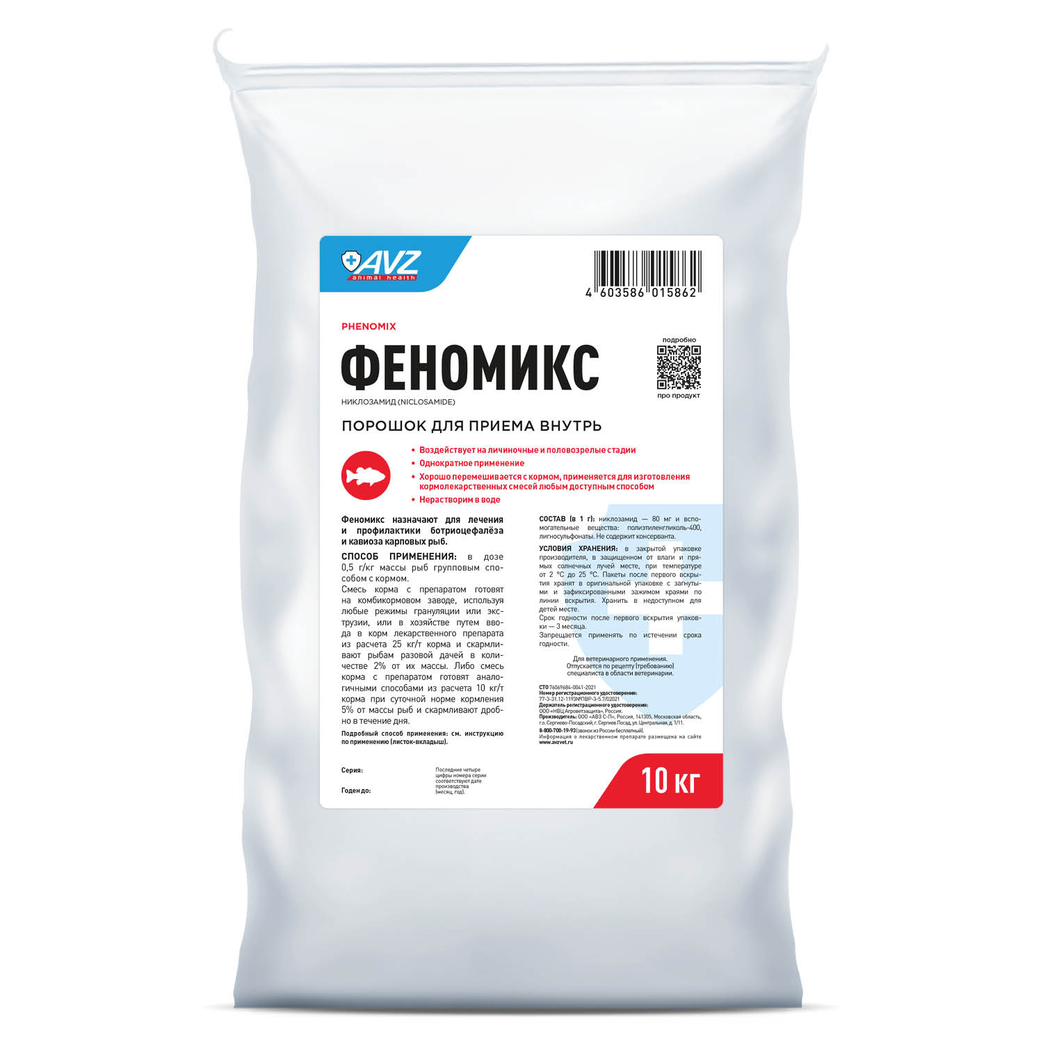 Феномикс в качестве действующего вещества содержит никлозамид - 80 мг/г.