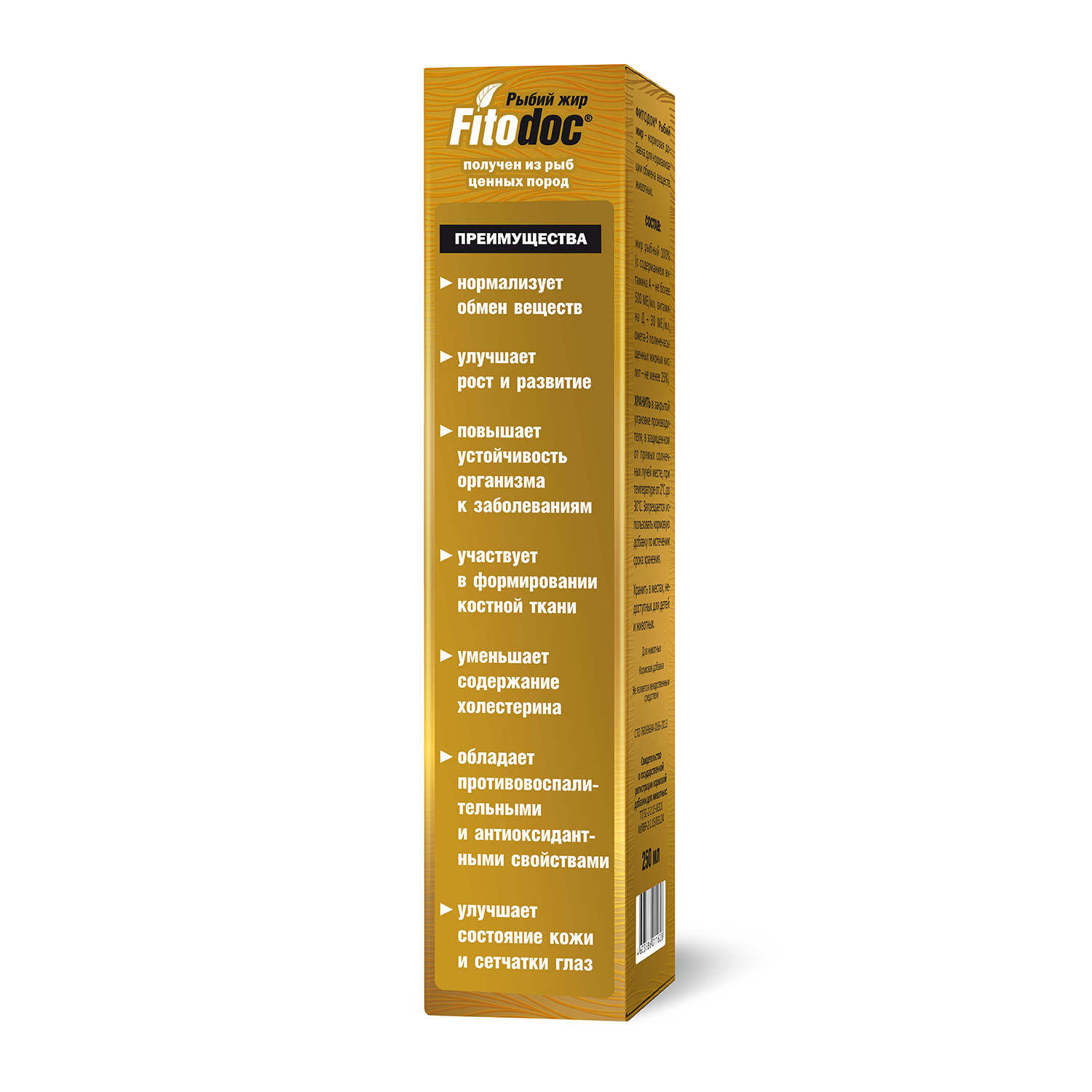 ФИТОДОК® Рыбий жир способствует нормализации обмена веществ, улучшает рост и развитие молодняка, повышает устойчивость организма к заболеваниям, участвует в регулировании обмена кальция и фосфора в организме и процессах формирования костной ткани.