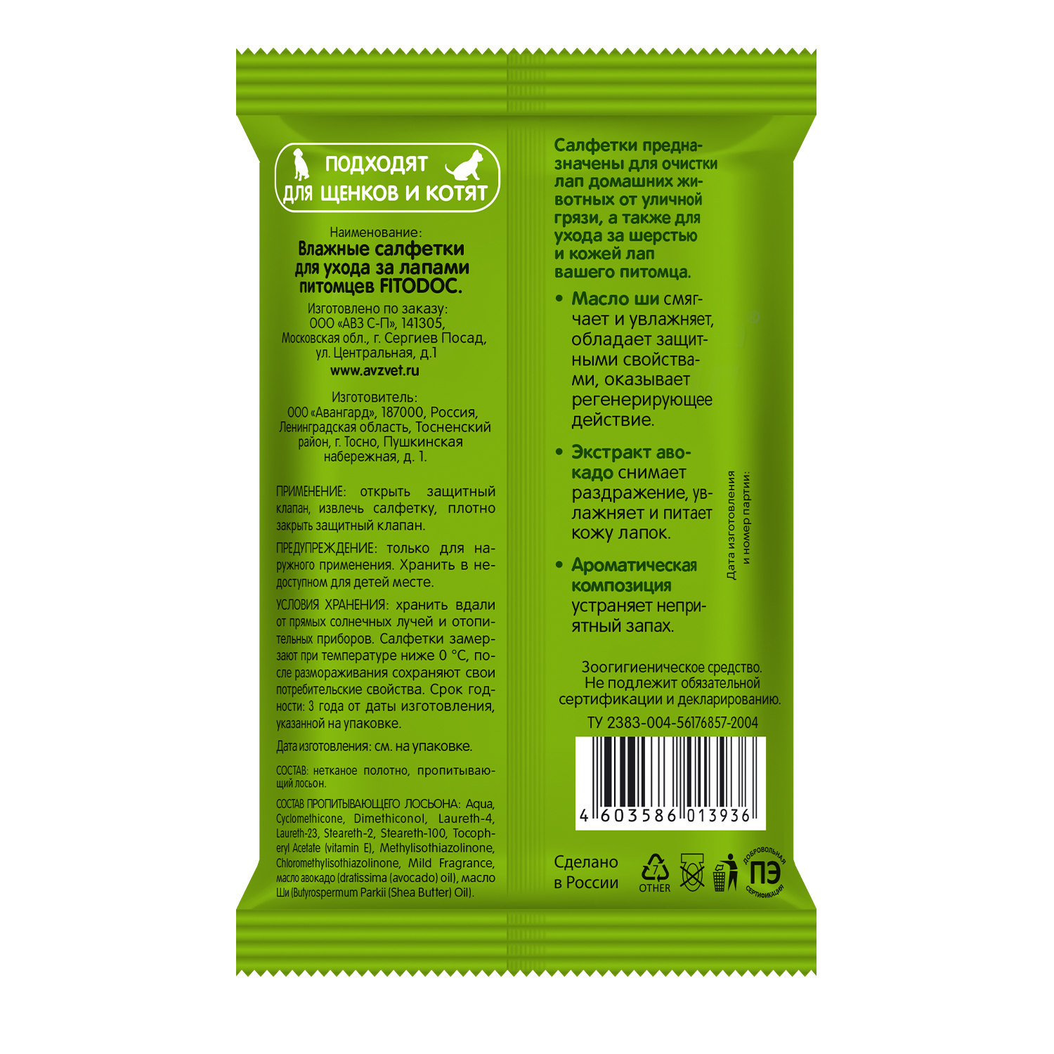 FITODOC® влажные салфетки для лапок собак и кошек
