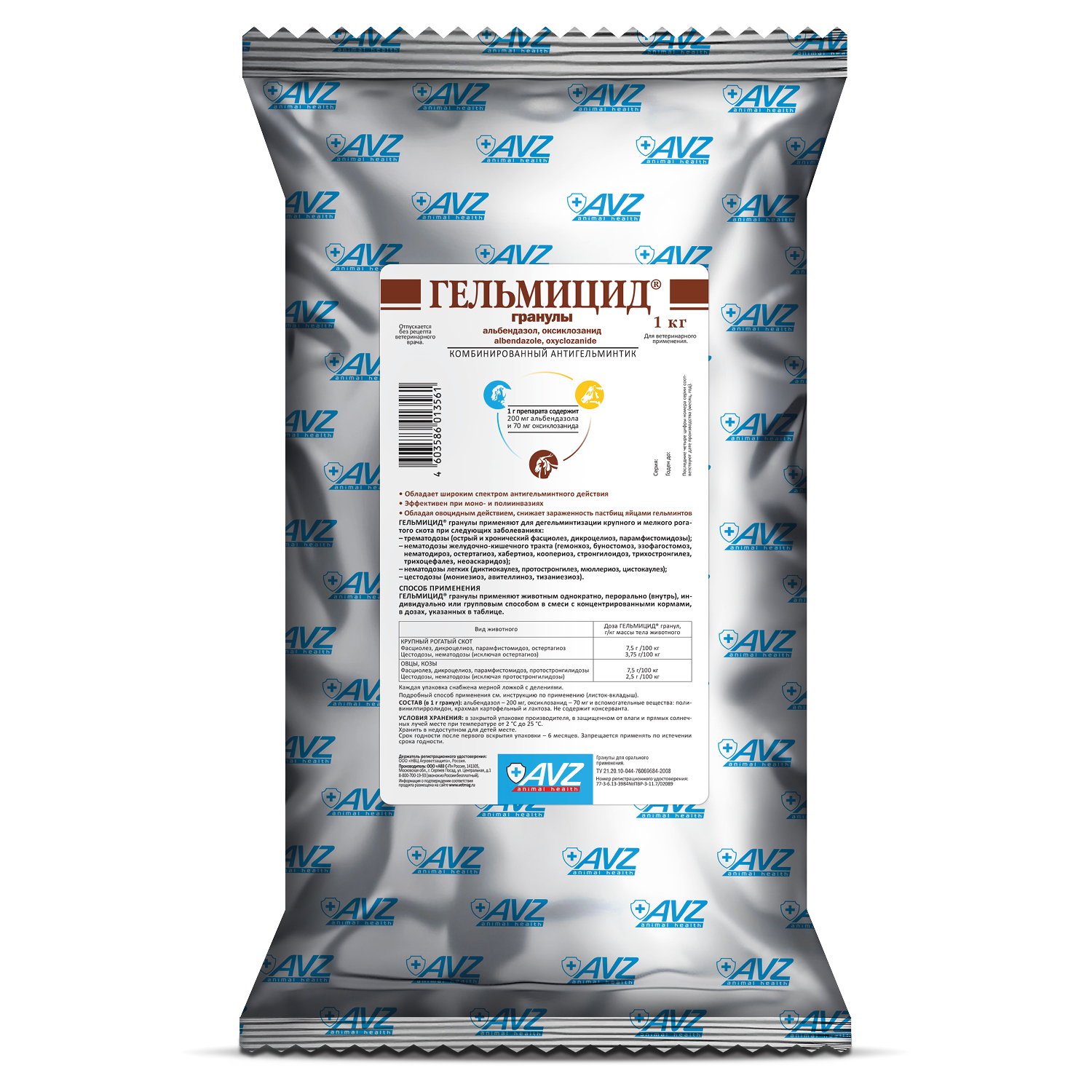 гранулы в 1 г в качестве действующих веществ содержат альбендазол – 200 мг, оксиклозанид – 70 мг.