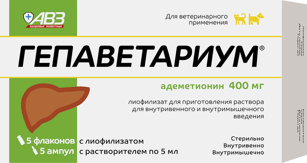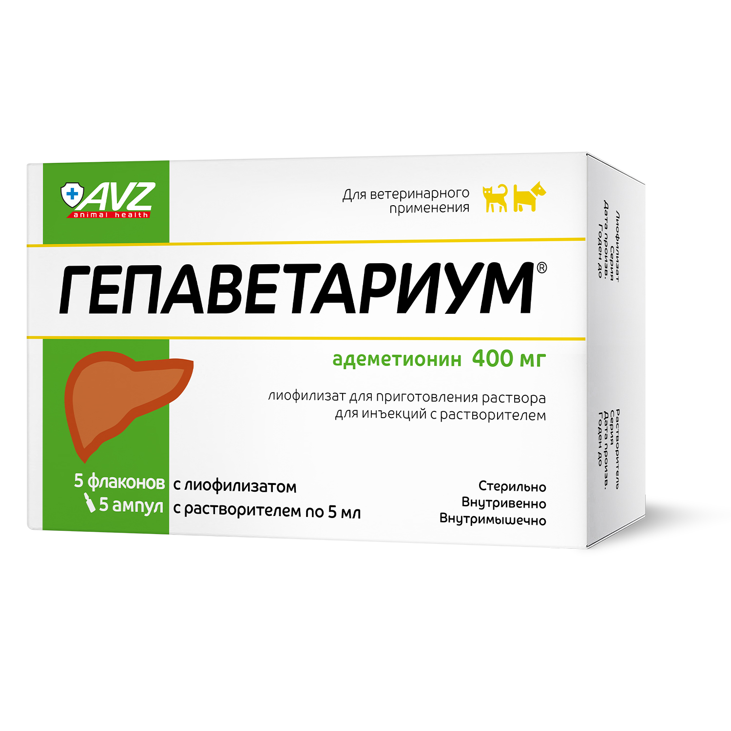 ГЕПАВЕТАРИУМ® 400 мг: 1 флакон лиофилизата содержит адеметионина 1,4‑бутандисульфонат 760 мг, что соответствует 400 мг адеметионина;