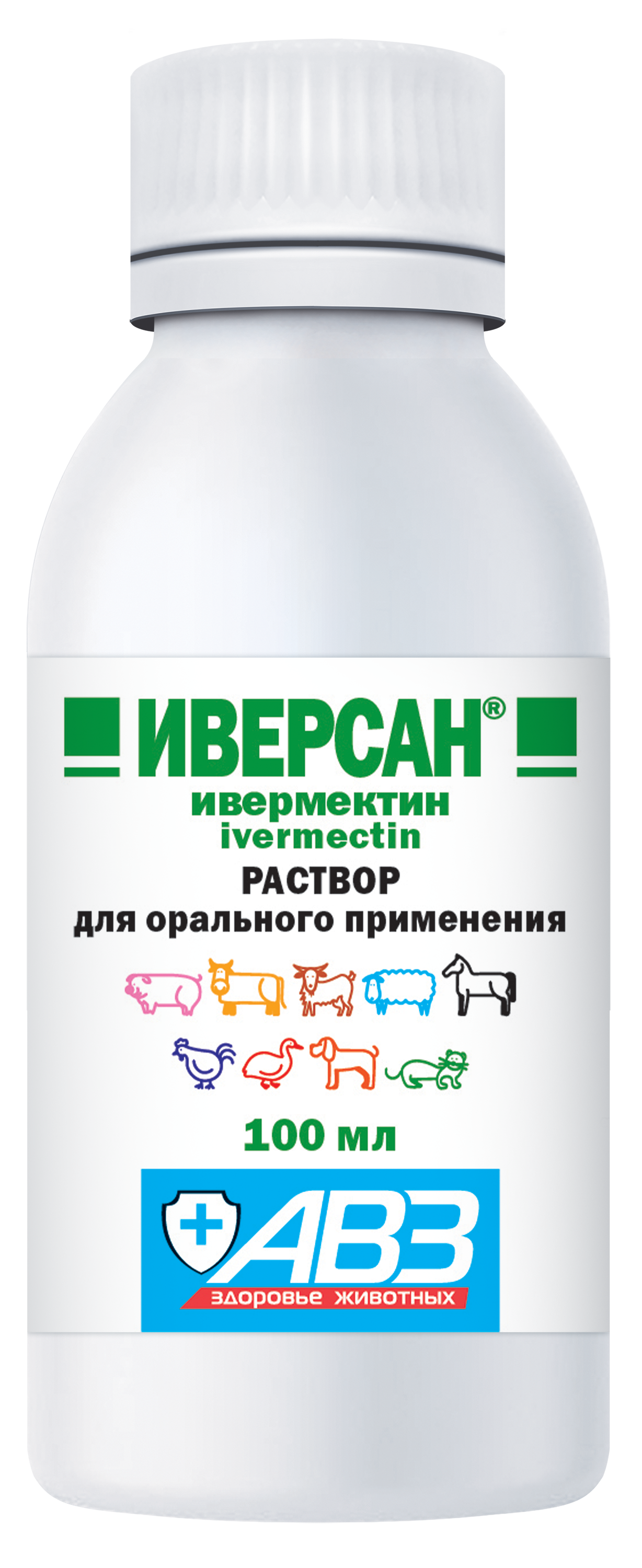 ИВЕРСАН® применяют с лечебно-профилактической целью свиньям, крупному и мелкому рогатому скоту, лошадям, сельскохозяйственным птицам (куры, гуси, утки, индейки), собакам и пушным зверям при нематодозах и арахно-энтомозах.