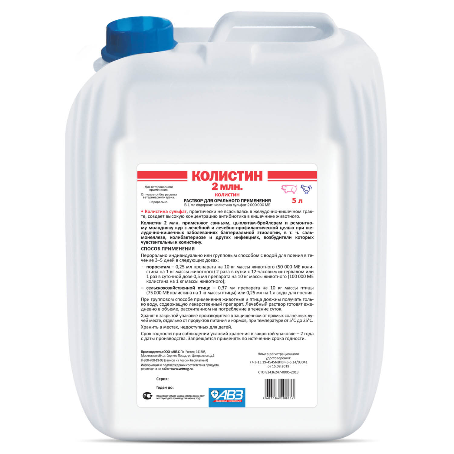 КОЛИСТИН 2 МЛН. Раствор для орального применения 5 л
