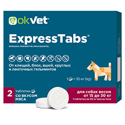 OKVET ExpressTabs таблетки от клещей, блох, вшей и гельминтов для собак от 15 до 30 кг