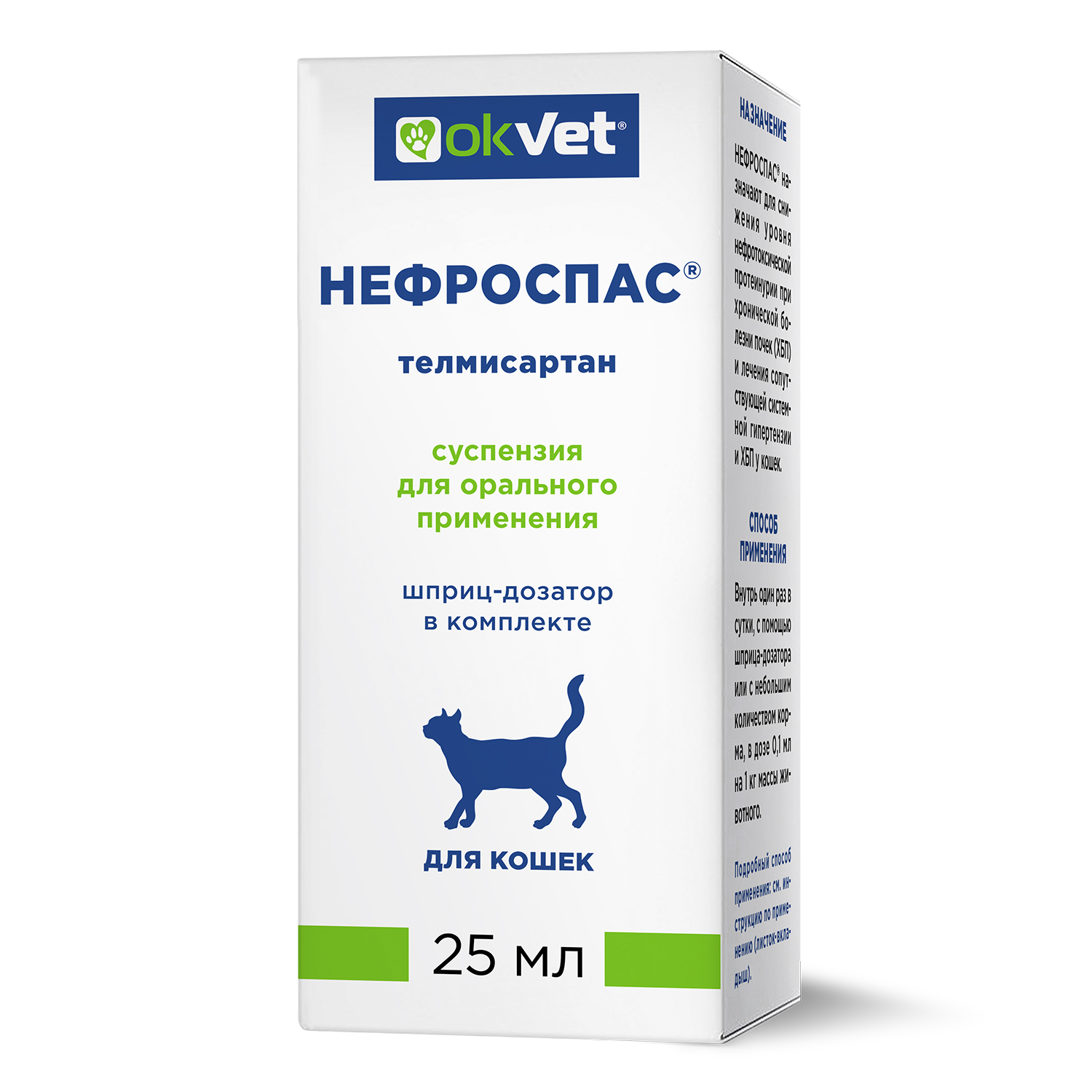 НЕФРОСПАС® в 1 мл содержит в качестве действующего вещества телмисартан – 10 мг и вспомогательные вещества: пропиленгликоль, мальтитол, бензалкония хлорид, вода очищенная.