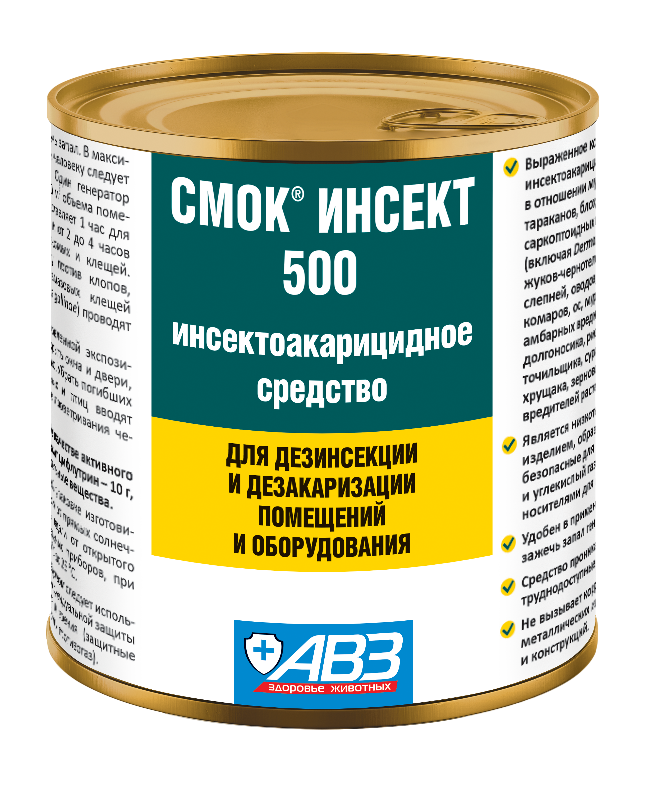 СМОК® инсект 50, 100 и 500 в зависимости от модификации в качестве активного компонента содержит цифлутрин - 5 г, 10 г и 40 г соответственно, а также вспомогательные вещества.