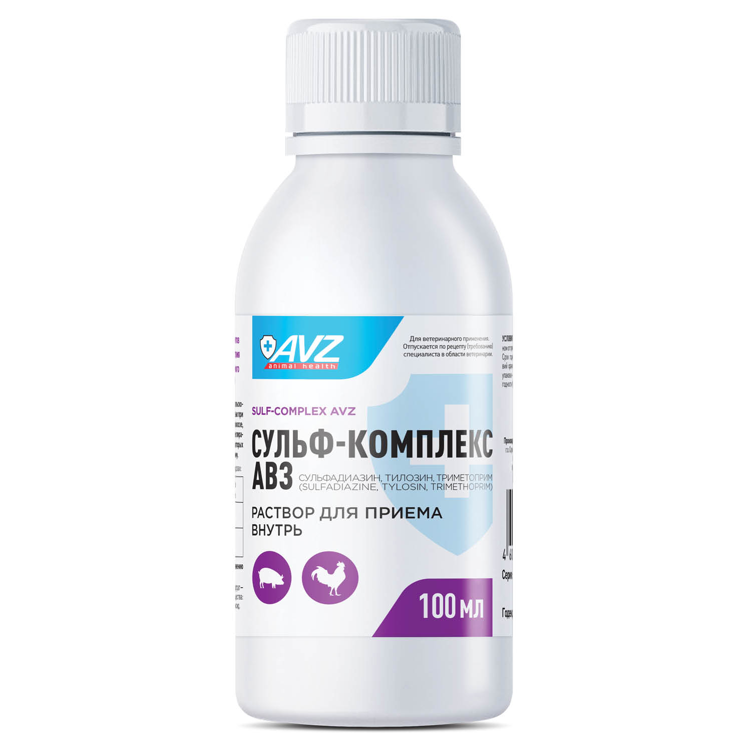 Сульф-комплекс АВЗ в 1 мл содержит в качестве действующих веществ сульфадиазин натрия – 178 мг, тилозина тартрат – 35 мг, триметоприм – 35 мг.