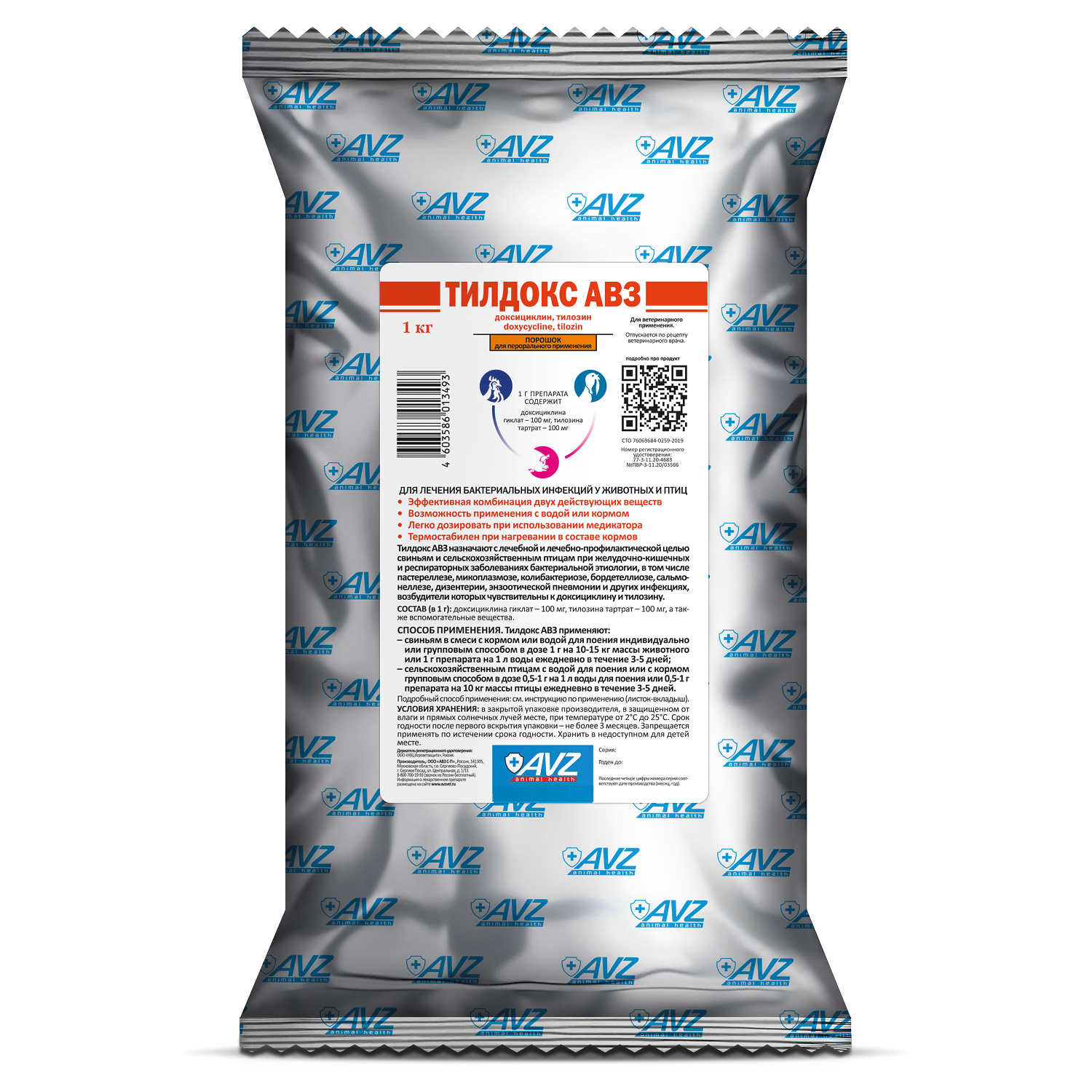 Тилдокс АВЗ содержит в 1 г в качестве действующих веществ доксициклина гиклат – 100 мг, тилозина тартрат – 100 мг.