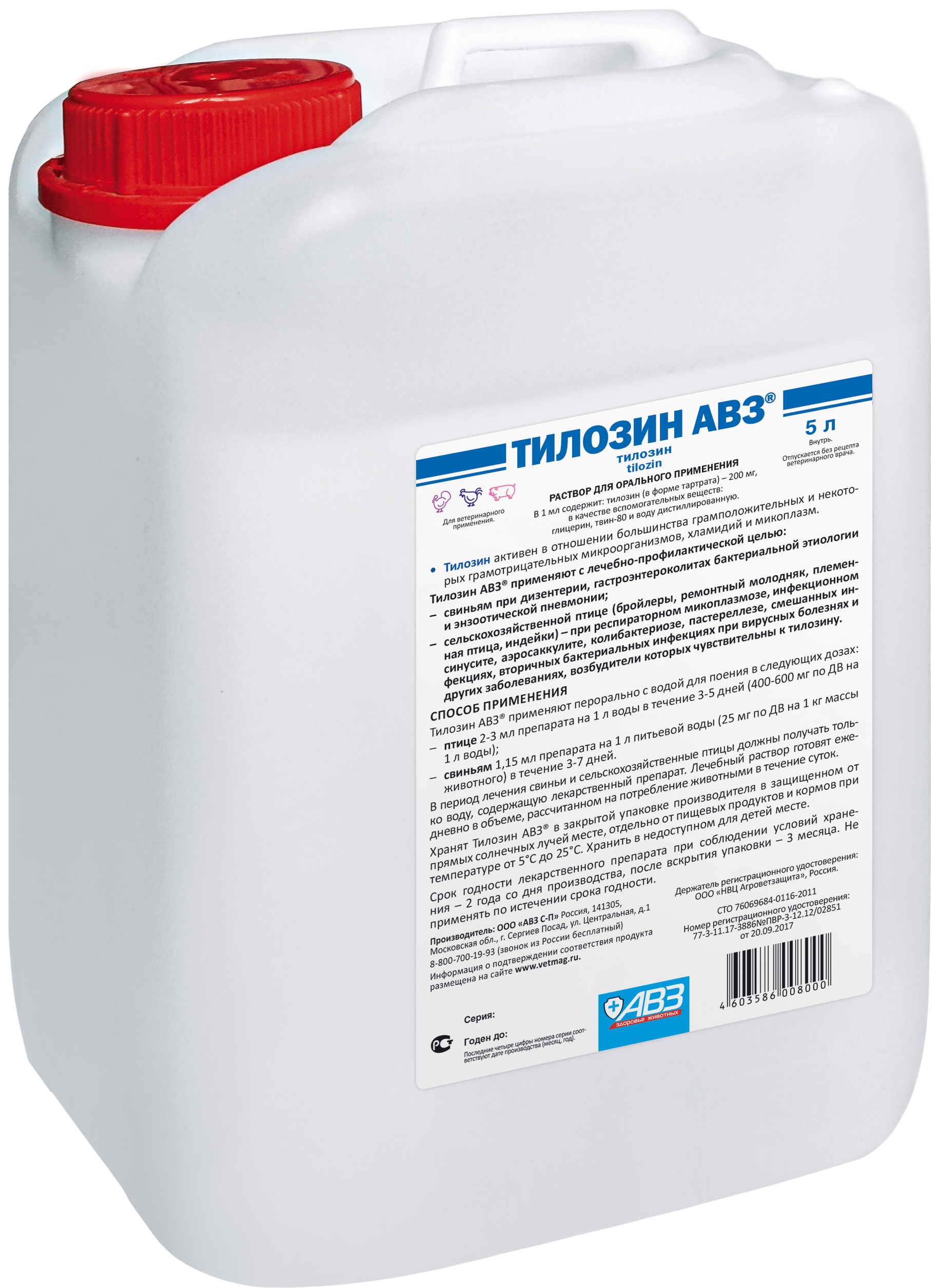 Препарат в качестве действующего вещества содержит тилозин (в форме тартрата) – 200 мг/мл.