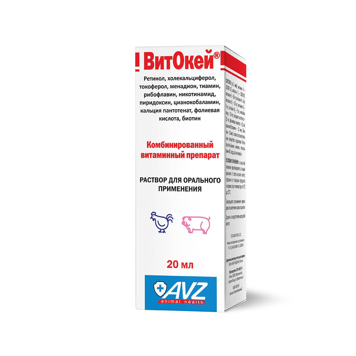 "ВитОкей" относится к комбинированным витаминным препаратам. Активные вещества препарата оказывают синергидное действие на организм животных и птиц, выражающееся в нормализации обмена веществ, профилактике гиповитаминозов и заболеваний, развивающихся на их фоне.